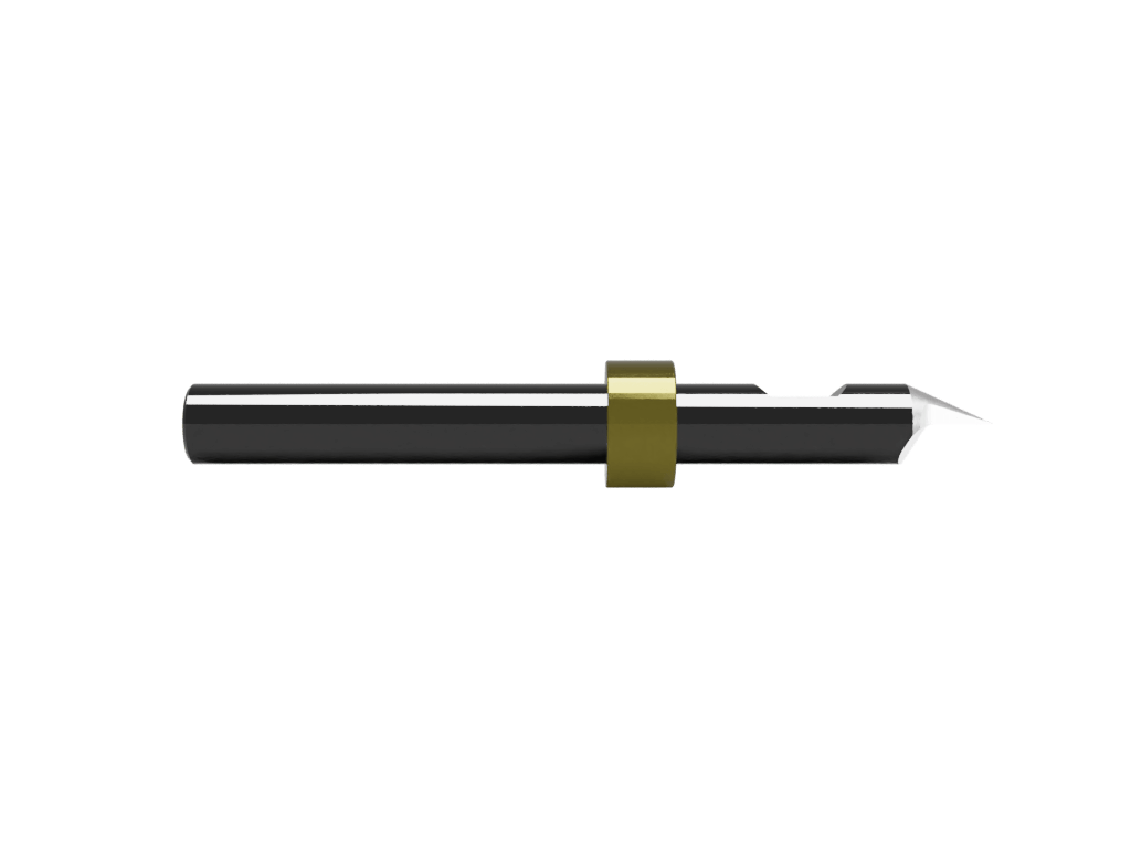 Single flute engraving bit with 60 degree angle. For acrylics and plastics. With stop ring (for use with the Zund ARC system and IECHO Tool Changer).