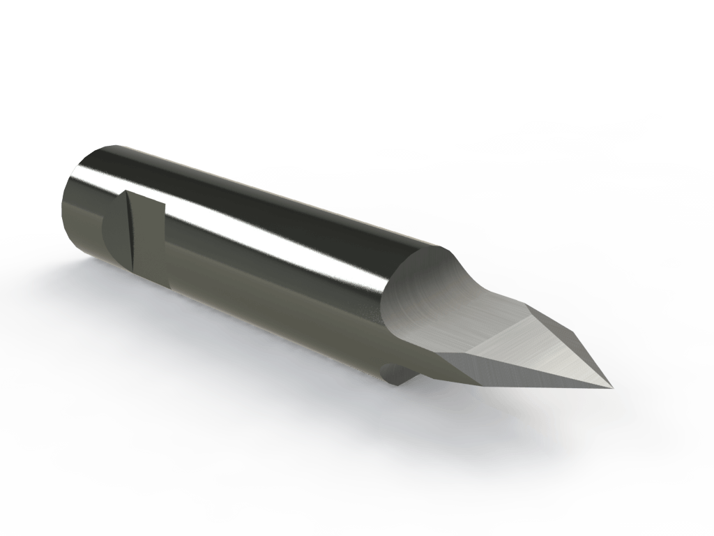 Double-edged blade with 8mm diameter cylindrical shank providing high rigidity for dense material/ high force cutting applications. Same cut parameters as the Z10 and VTX-K12 but with much higher rigidity. The blunter angle reduces the risk for breaking the blade in tough materials, but creates more overcut with thicker materials.
