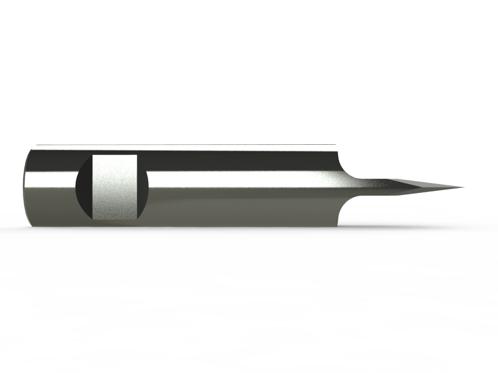 Double-edged blade with 8mm diameter cylindrical shank providing high rigidity for dense material/ high force cutting applications. Same cut parameters as the Z10 and CS-K12 but with much higher rigidity. The blunter angle reduces the risk for breaking the blade in tough materials, but creates more overcut with thicker materials.