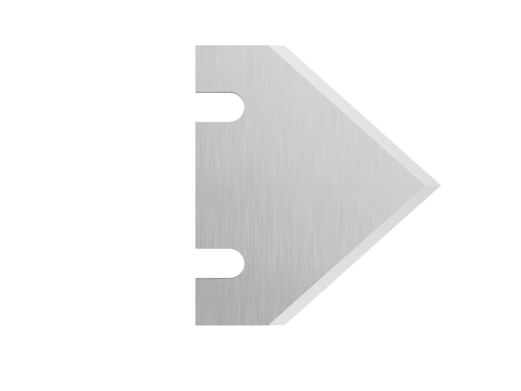 Arrow-shaped carbide blade for the Kongsberg VIxx-16 V-notch insert tools. Works well in materials such as fluted core boards and triple wall corrugated.