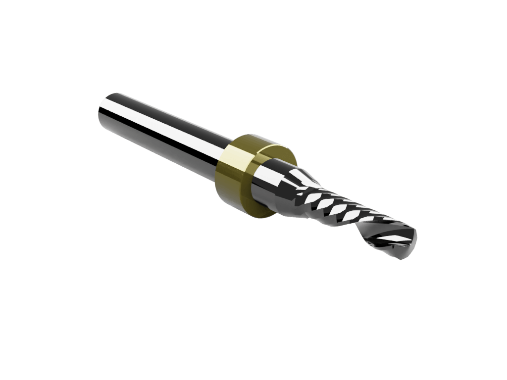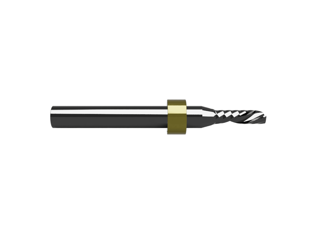 Multi-purpose, single O-flute, left-hand spiral (down cut) router bit with a 4mm cutting edge diameter and max milling depth of 14mm. With stop ring (for use with the Zund ARC system and IECHO Tools Changer). If cutting metals or ACM we highly recommend our Rainbow/DLC coated 500 series.